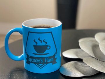 Coffee mugs, handmade travel cups, t-shirts, books and stickers are always in stock at the shop.